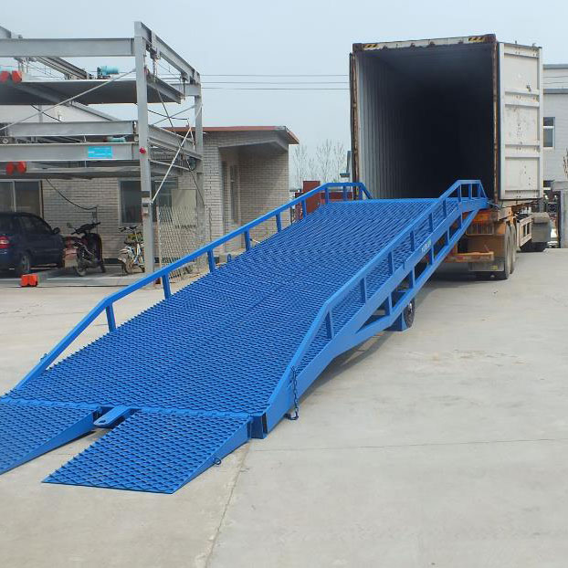 移動(dòng)式液壓登車橋:是實(shí)現(xiàn)貨物快速裝卸的專用輔助設(shè)備,它的高度調(diào)節(jié)功能使貨車與地面之間架起一座橋梁,叉車等搬運(yùn)車輛通過(guò)它能直接駛?cè)胴涇噧?nèi)部進(jìn)行貨物的批量裝卸,僅需單人作業(yè),即可實(shí)現(xiàn)貨物的快速裝卸。
